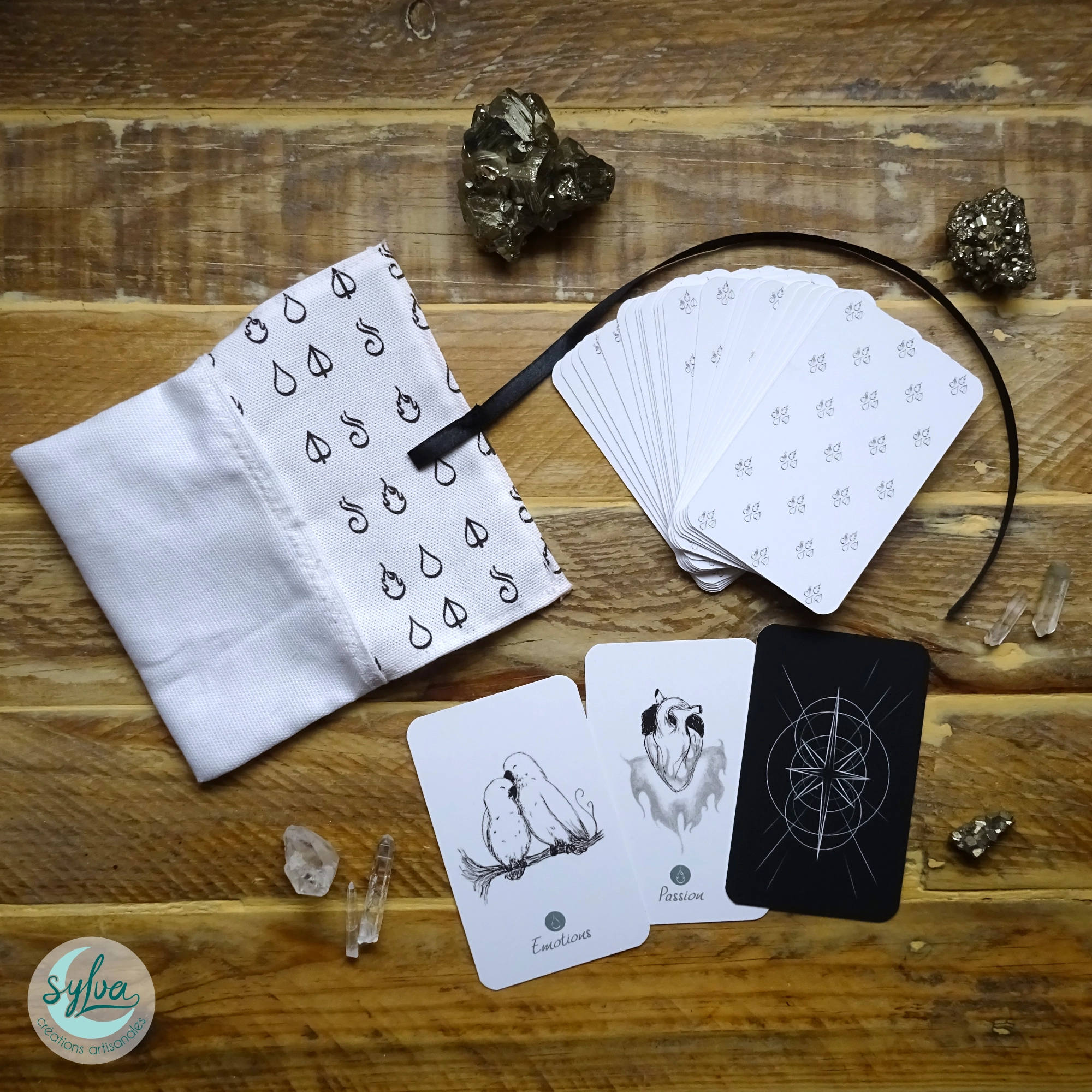Chaque oracle a une résonnance différente en fonction des sensibilités, et une utilisation spécifique en fonction des affinités qui se crée. J’ai plusieurs jeux divinatoires, je les laisse m’appeler pour les guidances, en fonction des réponses que je cherche. Et pourtant, bien qu’ils soient divers, il me manquait des outils pour ma pratique, que j’ai donc crée.